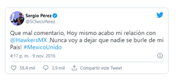 Tuit de Sergio Pérez: